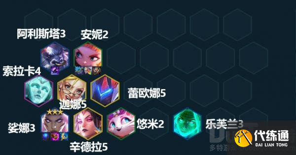 完成这3个目标我们就可以拉到9了,补上蕾欧娜凑出2秘术卫士羁绊。场上法系阵容少的话也可以不上蕾欧娜,单挂其他五费卡,如厄加特、稻草人、努努