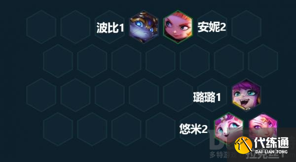 5人口用波比、璐璐、拉克丝、悠米、安妮组成3小天才2爱心使者2灵能使的阵容打工,合出来给娑娜的装备给拉克丝打工。我们这套阵容前期是要走连胜的,只要手里有这几个怪就可以先升人口。
