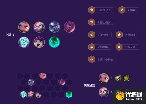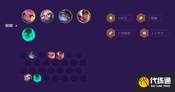 前期用3发明家配拉克丝凑2灵能打工,佐伊来了可以换一个发明家,补个乐芙兰凑2黑客。