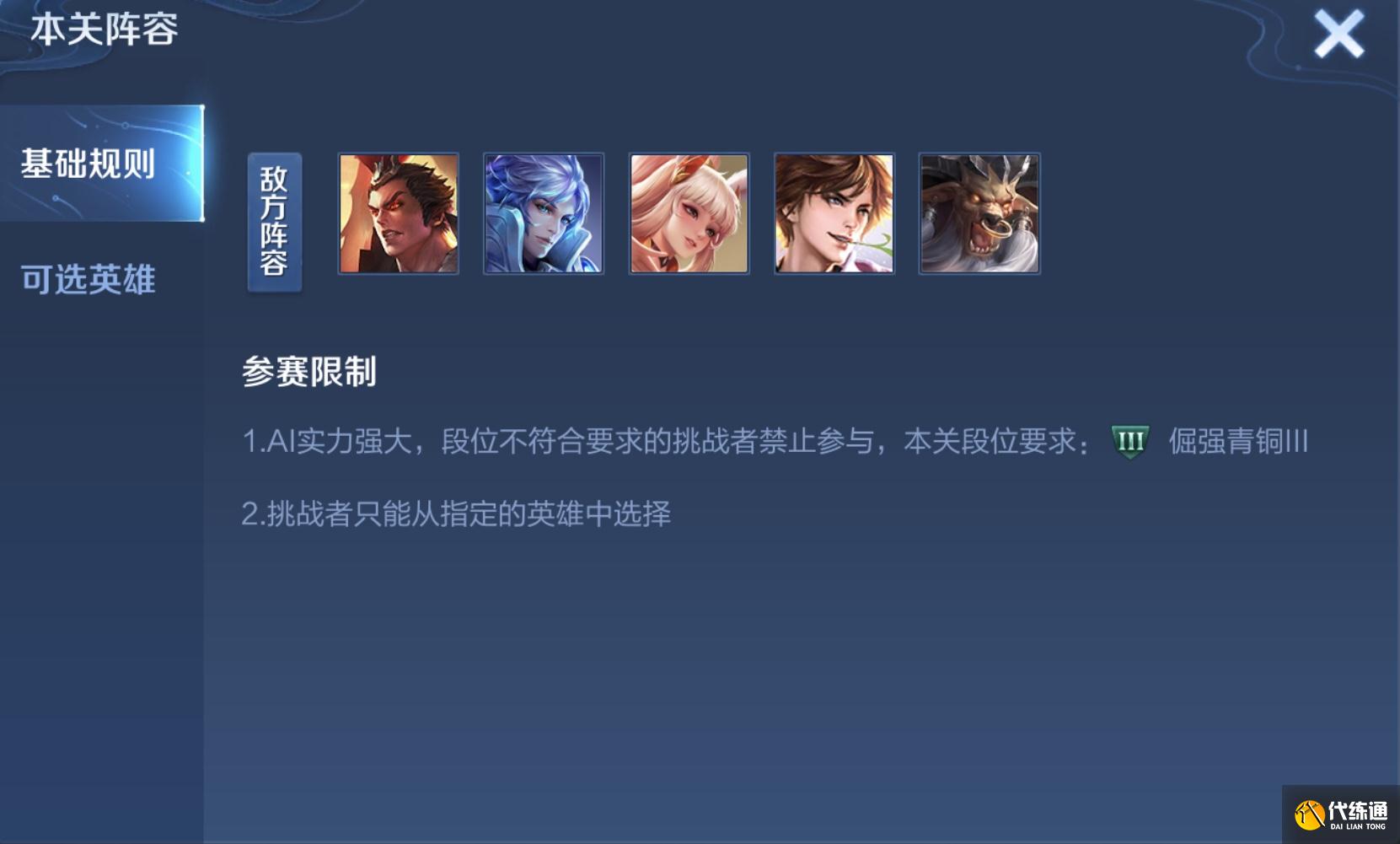 1.本关卡中敌方选择的全部都是在牛年新春期间推出了牛年限定皮肤和荣耀典藏皮肤的英雄,并且他们组成一个阵容是非场和谐的,这个关卡的难度偏高,不好寻找突破点,建议大家采用最常规的五条分路均衡的打法来挑战。