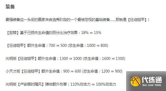 最强装备这一头衔的赢家来自选秀阶段的一个最被忽视的基础装备……那就是【狂徒铠甲】!