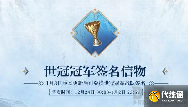 世冠冠军签名信物:1月3日版本更新后可兑换本届世冠冠军战队签名