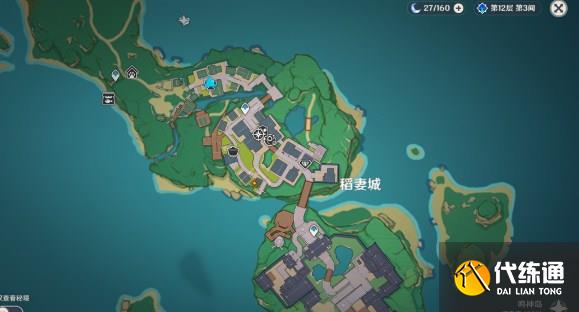 1、我们来到稻妻城中,找到如图所示的NPC叫做龙二,上前与其互动。