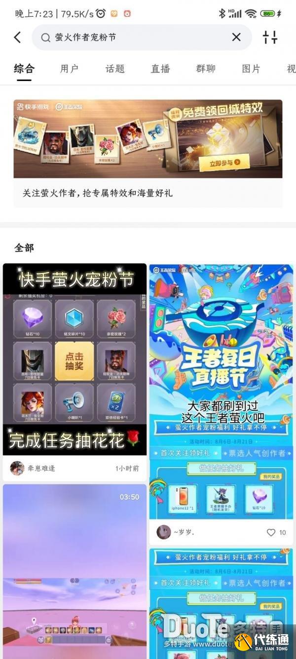 下载快手app,搜索“萤火作者宠粉节”,进入活动后可见获取条件,然后关注下方推荐的作者三名。