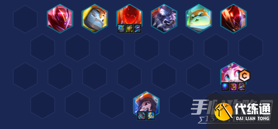 由于该阵容整体属于低费阵容,所以在前期可以卡利息D三星,在六人口要追出三星悠米,然后升七开出三超级英雄。在悠米强势期时,要根据对面阵容选择是提高整体质量还是升人口转九五。