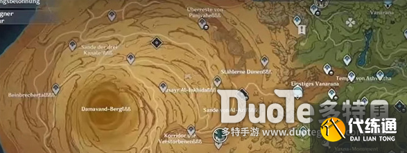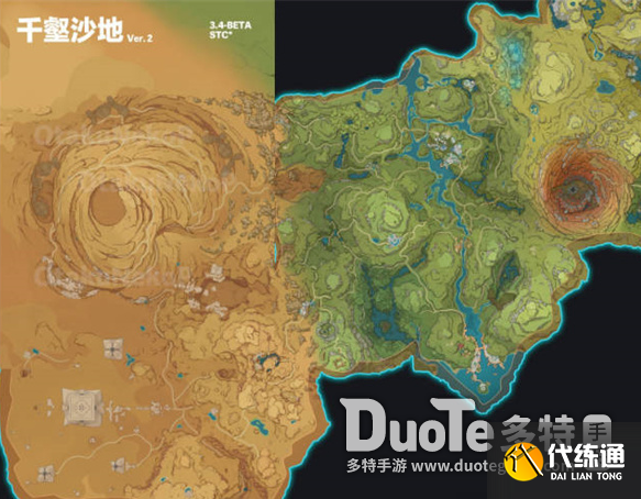1:如图所示,这个就是3.4新地图的千壑沙地面积了,是非常大的一个地方,而且目前须弥还有一部分没有开启;