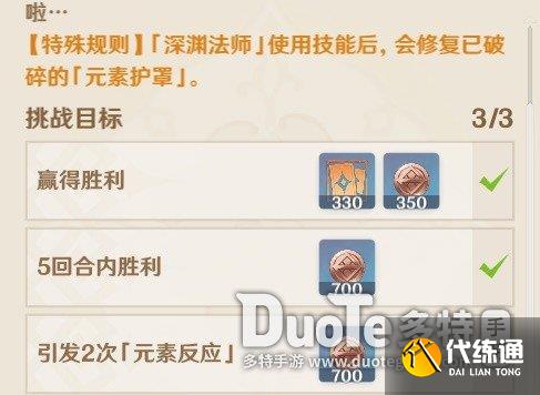 规则:深渊法师使用技能/元素爆发,都会给自己叠两层盾,特别麻烦。破盾挺耗回合的,阵容不好容易拿不满奖励,开局手牌非常关键!