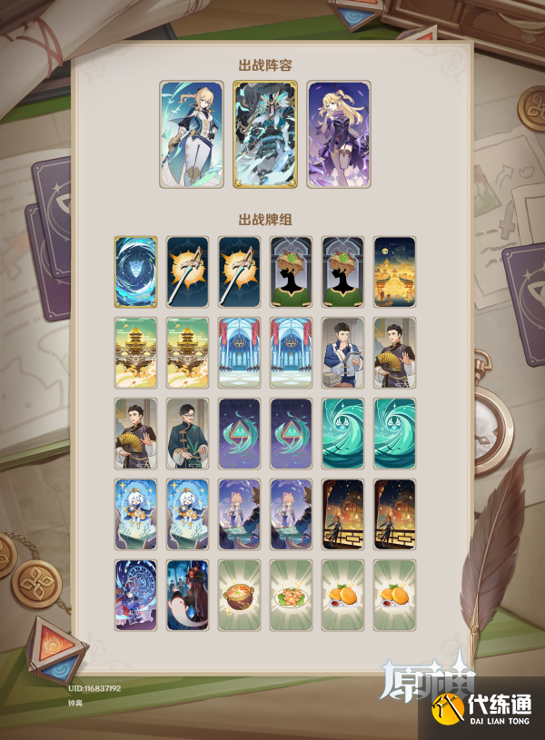 双风卡、鹤归能提高队伍灵活性,两费派蒙和双风骰是战略性卡牌,能解决很多因为骰子的问题。带一张胡桃是为了在PVP中应对召唤流,消灭对面关键召唤物,从而拿到优势打乱对面的节奏。