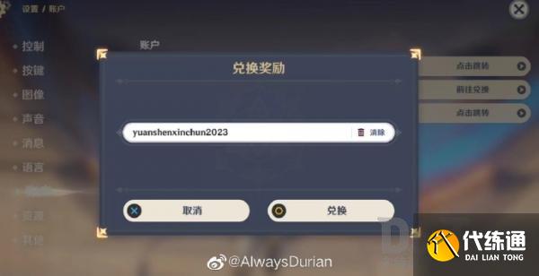 兑换码:yuanshenxinchun2023 可以兑换啦