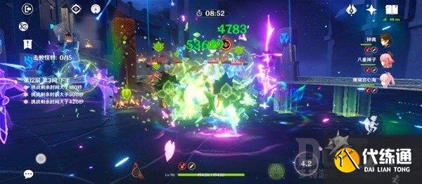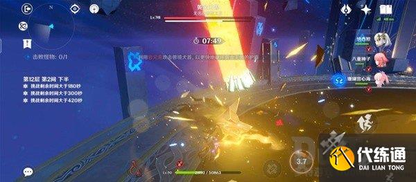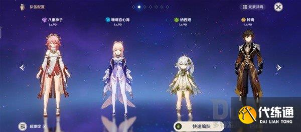 需要一个带有范围伤害的高爆发配队,以腾出足够的时间给下半,这里推荐“雷神国家队”,要求练度必须达标,有夜兰的话更好。有2命雷神+专武,6命九条的,可以上雷九万班。