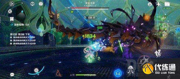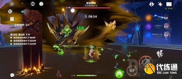 当然,如果不能连打通关,可以分开通关,比如带岩系角色和三个输出按时打完黄金王兽;然后换成奶妈和三个输出,黄金王兽转阶段的狗头用元素伤害硬磨过去,保证按时打完第三间的狗头大队。
