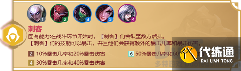刺客开局跳到敌人后排,刺客的技能可以暴击,并且获得额外暴击率和暴击伤害。