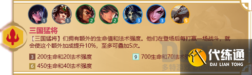 三国猛将们拥有额外生命值和法强,并且每赢一次都会提高10%,最高叠加5次。
