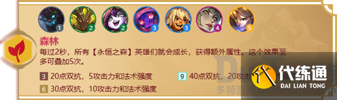 每过2秒,永恒之森的英雄们就会成长,获得额外属性,增加双抗、攻击和法强。
