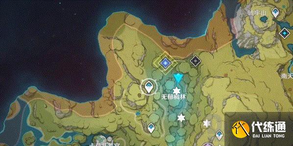 1、首先我们打开原神地图,然后找到无郁稠林左侧的传送点,点击传送。