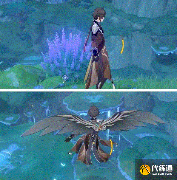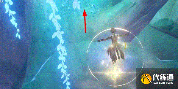 2、到达传送位置后,我们将视角拉到左侧花的位置,然后朝着花所在的方向跳下去,然后一直往前飞。