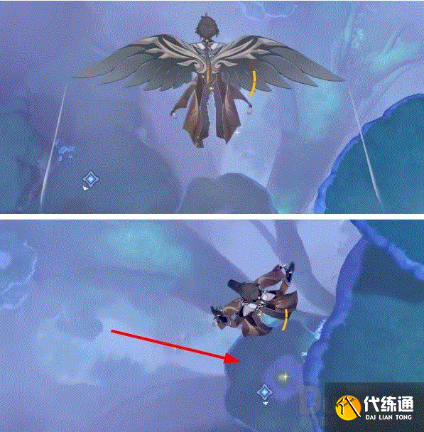 4、到达降落位置以后,我们朝着箭头方向移动,然后一直往里走。