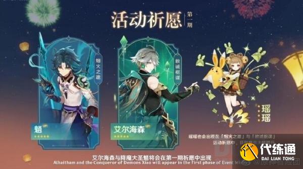 首先是3.4上半部的相关卡池,不出所料果然UP的是艾尔海森,不过另外一位是五星是魈,这个倒是没想到,这俩搭配在一起同时UP也挺好的,显得春节来之前一片绿油油的,挺有生机,因为是新的五星角色,而且现在还不能给强度下定论,所以暂且观望一下。