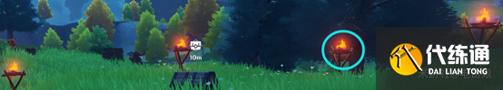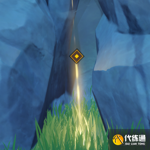 5、玩家上山之后来到下图所示的地方,再次开启元素视野,可以看到这个紫色光点。