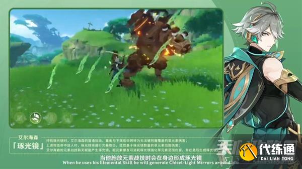 (3)元素战技和天赋产生琢光镜,元素爆发可消耗琢光镜强化草元素范围伤害,并在此后生成琢光镜;