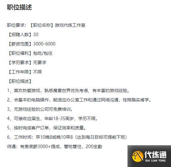 下面是某代练工作室招聘薪资待遇,大家可以简单了解一下
