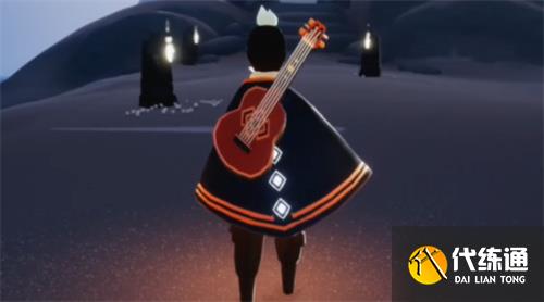 暮土地图龙骨之地,进图后往右前方飞行,在乱石堆下面可以找到一堆篝火,吉他先祖就在篝火旁。
