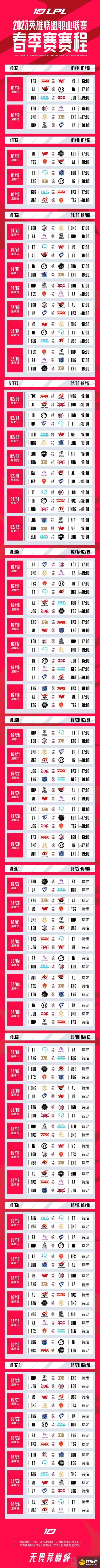 2023LPL 春季赛赛程: