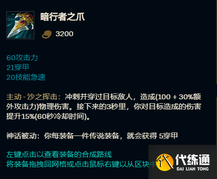 暗行者之爪:这件装备是许多无位移英雄的福音,作为一件携带定向位移效果的装备,其提供的被动穿甲效果也十分可观,适合英雄大致有:元素女王,挖掘机以及诺手等。