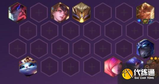 1、阵容组成:永恩、刀妹、武器、盲僧、肾、猫、霞、千珏、天使。