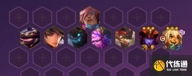1、阵容组成:永恩、皎月、肾、阿卡丽、劫、凯南、派克、男刀、卡特。