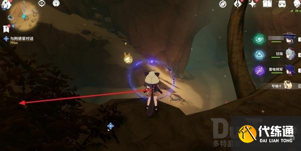 往下跳入峡谷然后回头可以看到一个传送锚点和一个洞口。开启传送锚点。