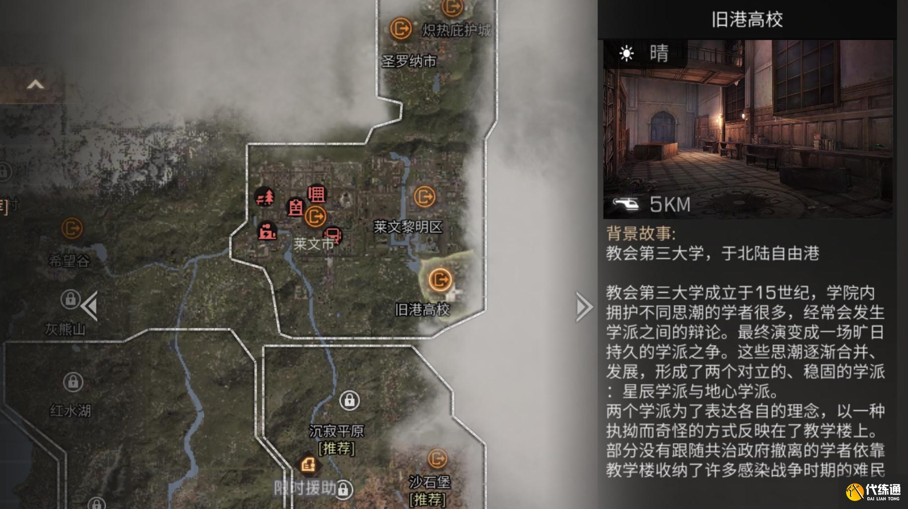 幸存们在确认拥有进入辐射高校的资格后,可以在明日之后游戏主面板右上方的位置找到“辐射高校”的小标志,点击之后可以在活动页面选择进入辐射高校。幸存者们也可以直接点开右上角的世界地图,找到地图中的“旧港高校”标志,乘坐直升机前往。