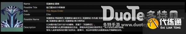 「深渊教团」的魔物,以漆黑的力量,操使冰霜进行战斗。它的部分攻击对角色造成伤害时,会削减角色的体力,注意躲避它的攻击,不然会很危险。