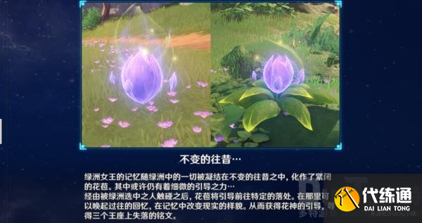 3.获取永恒绿洲的记忆一、二、三,需要到永恒绿洲周围的三个紫色花苞处进行解密