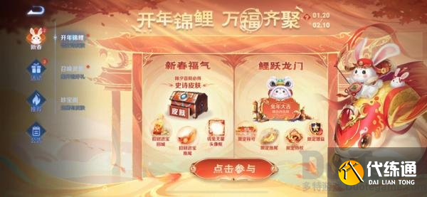 2、游戏大厅活动 -> 新春 -> 开年锦鲤 送史诗皮肤