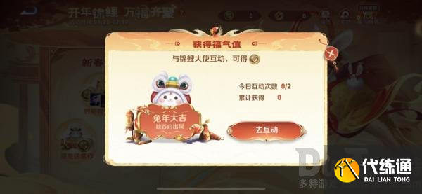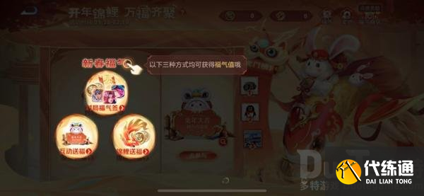 开放期间每日与峡谷泉水处锦鲤大使互动,58福气值/次,每天2次。锦鲤大使出现对局模式为5V5匹配、排位、巅峰。福气值需当天在活动内手动领取;