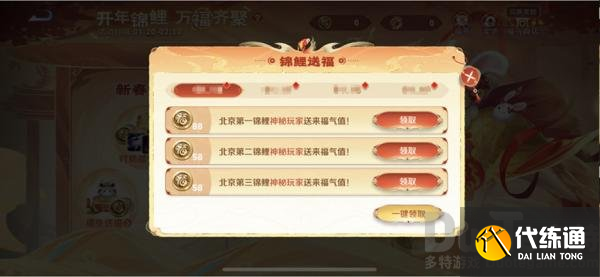 3、总榜上榜玩家送福时间:1.28日定榜后,1.29 8:00~2.5 23:59:59送福;