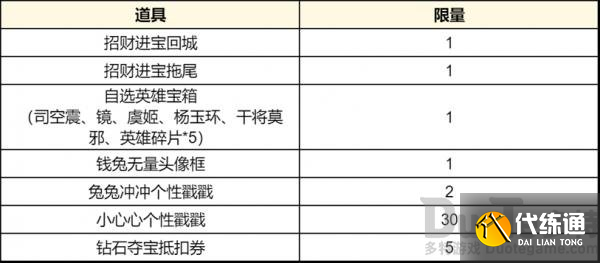 2、参与活动收集新春福气值,即可在活动福气商店免费兑换全新春节主题招财进宝回城、招财进宝拖尾、钱兔无量头像框、兔兔冲冲个性戳戳、自选英雄、小心心个性戳戳、钻石夺宝抵用券等好礼。每日对局福气签,与峡谷泉水处锦鲤大使互动均可获得福气值,另外参与“龙门榜”排行且上榜锦鲤玩家也将为大家送出新春福气值;