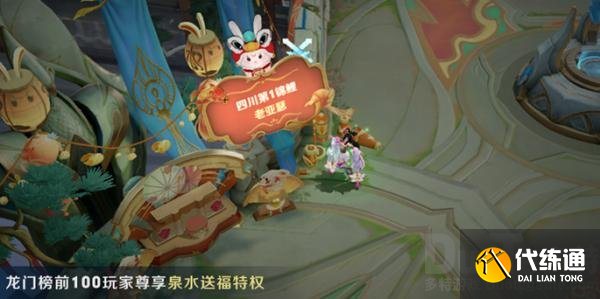 开放期间每天龙门榜单日榜、总榜前3上榜玩家均将送出福气值。第1名送出88福气值/次,第2、3名送出58福气值/人/次。单日榜在次日8:00放榜后送福1次,总榜在1.29日开始送福,每天1次,持续至2.5日;