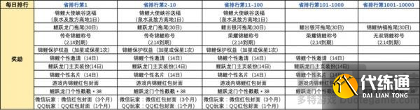 2、每个省份设立QQ和微信2个榜单,按帐号小区角色的锦鲤值参与排名;