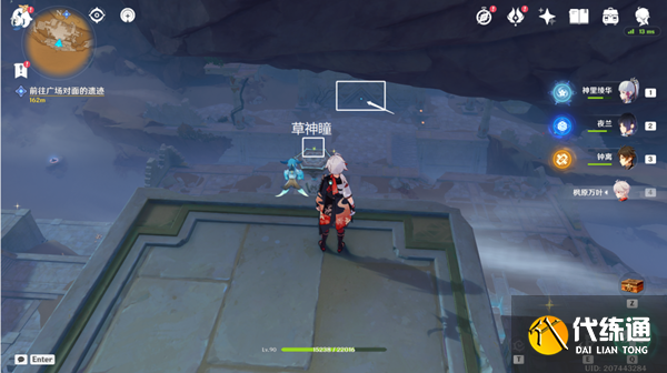 1、往北边飞,拿到草神瞳,开启广场对面的遗迹。