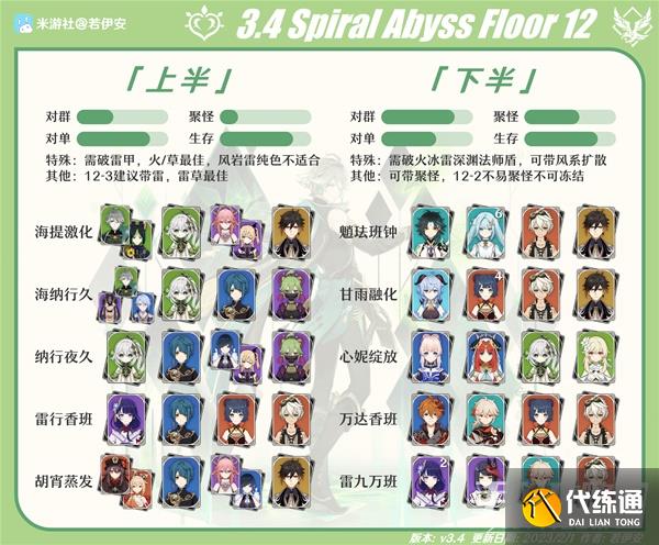 《原神》3.4深渊第12层怪物配置与打法攻略