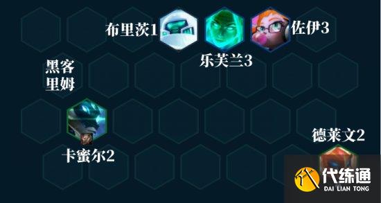 阵容组成:卡蜜尔、布里茨、德莱文、乐芙兰、佐伊