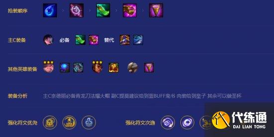 主C奈德丽必备青龙刀法爆大帽 副C提莫建议给到蓝BUFF鬼书 肉装给到皇子 其余可以做圣杯。