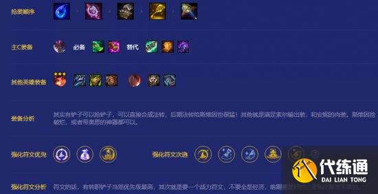 其实有铲子可以抢铲子,可以直接合成法转,后期法转给斯维因也很猛!其他就是满足索尔输出装,和安妮的肉装。斯维因捡破烂,或者带奥恩的神器都可以。
