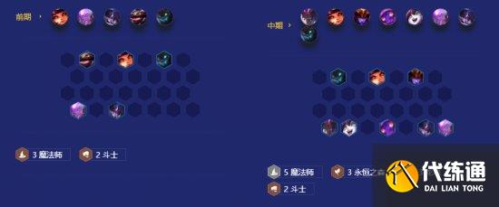 前期可以用法师加斗士过渡,也可以斗士加神射手过渡。装备的话就给提莫或者奈德丽带。
