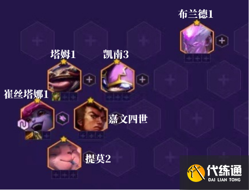 阵容组成:小炮(龙魂天选)、提莫、布兰德、塔姆
