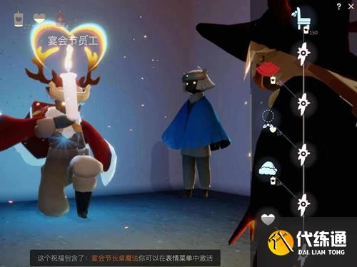 3、点击宴会节员工进行对话,解锁树状图,就能使用150根白蜡烛兑换圣诞节椅子。
