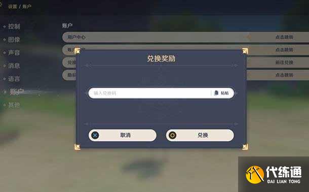 打开原神,点击左上角的头像,点击左侧的设置图标,进入设置界面,点击账户,然后点击兑换码后面的【前往兑换】,输入兑换码,点击兑换就可以了。