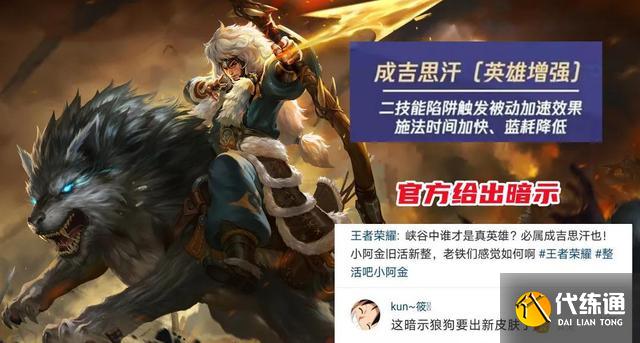 至于为什么,那么我也只能说他的知名度高了,别人都是出新皮肤有知名度,它就是不出皮肤有这么多。就在昨天官方点名成吉思汗的时候,有玩家在下面评论王者荣耀是不是准备给狼狗要出新皮肤了?而官方的回复也没有否认,也没有承认,只是表示官方的心思你别猜。